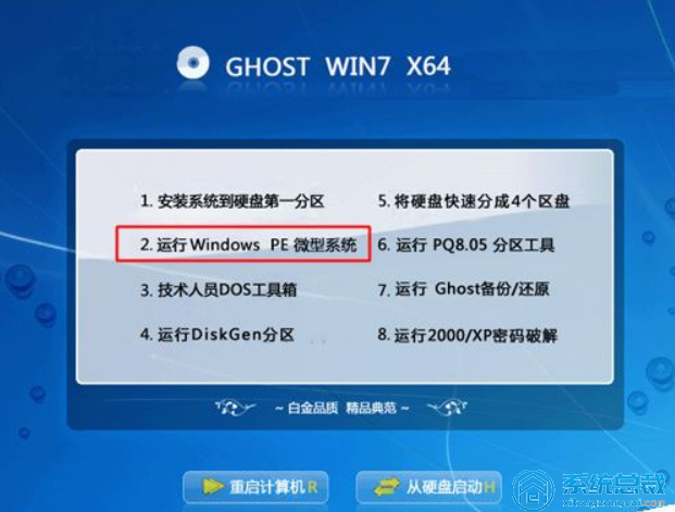 2、如果电脑显示Press any key to boot from CD...,立即按回车键,从光碟启动进到主菜单,按数字2或点一下选项2运行【Windows PE小型系统】;