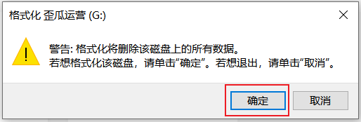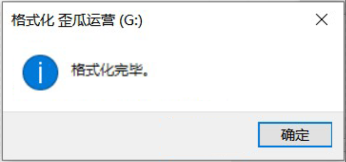 5.在执行格式化后,单击确定按钮。