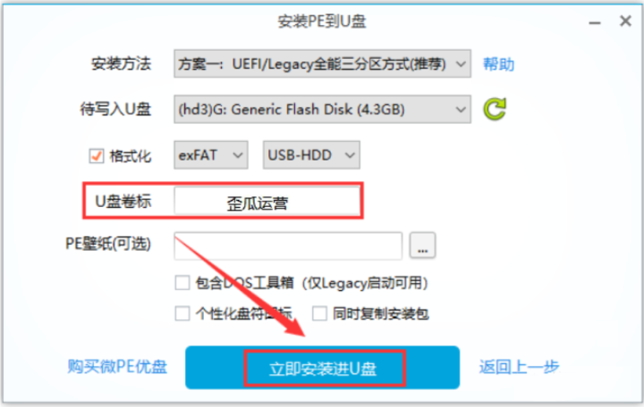 9.单击“立即安装U磁盘”按钮(在U磁盘滚动栏中显示的名称是自定义U磁盘插入的名称)。