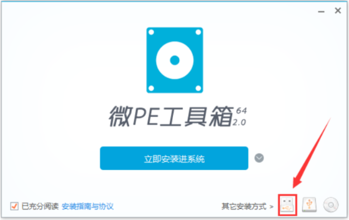 8.在右下角选择U磁盘图标,然后单击“设置PE到U磁盘”。