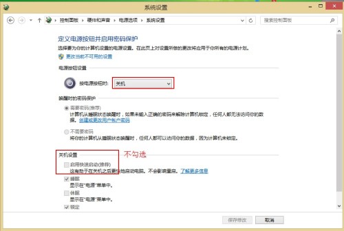 4. 取消对“启用快速启动(推荐)”的勾选。