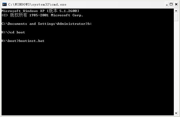 首先输入你优盘的盘符,我这里是h盘,输入h:然后回车