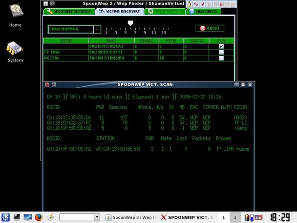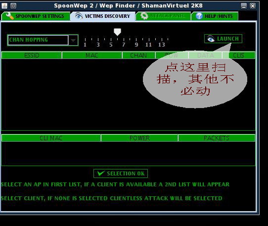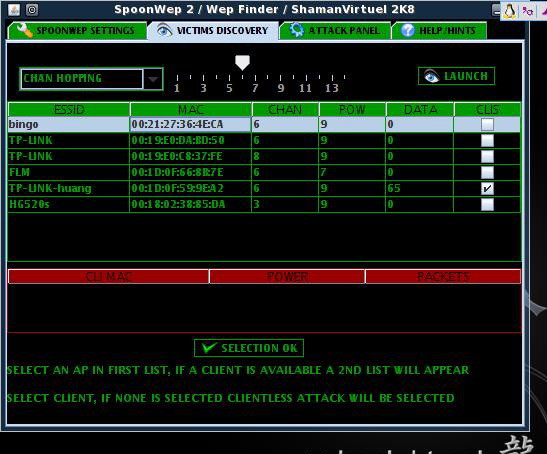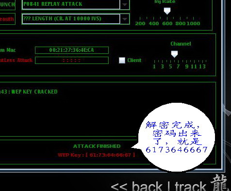 选择开始-backtrack->radio network analysis->80211->all->spoonwep2,跟windows操作一样