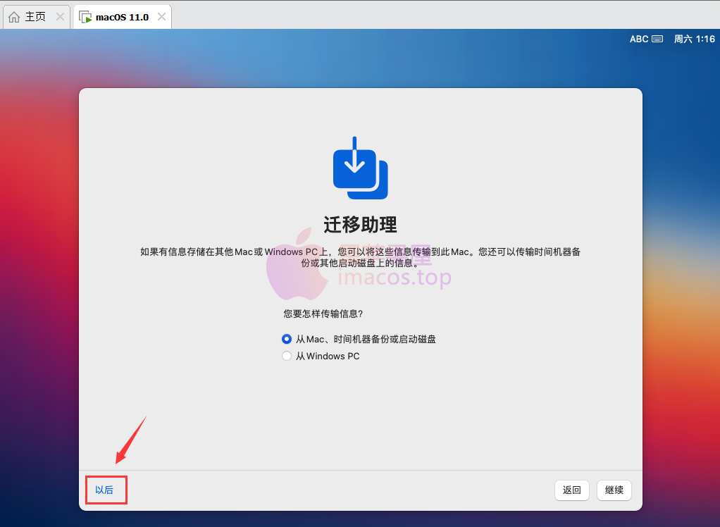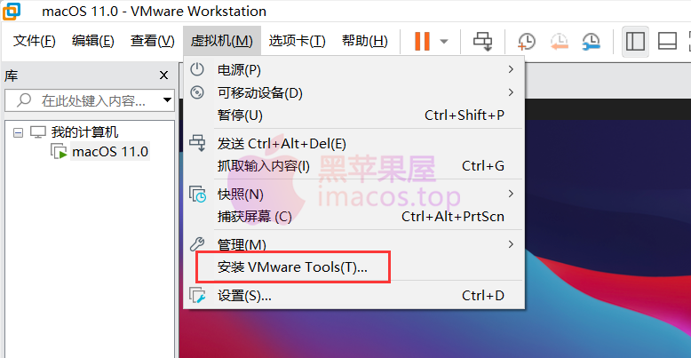 WINDOWS安装了 macOS大苏尔 在一台名为VMware16的虚拟机器上。