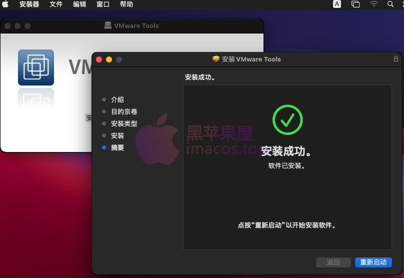安装后, 系统必须重新启动, 然后点击虚拟机启动全屏模式, 让 macos 以全屏模式查看 。