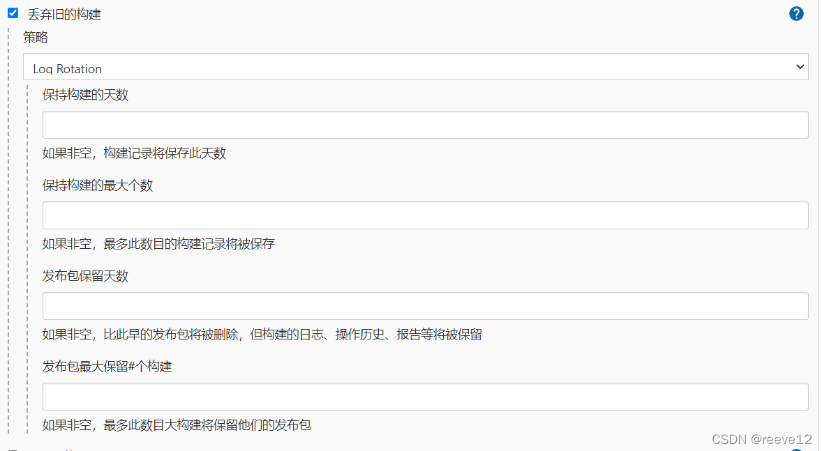显示名称 : 在 Jenkins Web GUI 中, 项目的可选显示名称, 如果不填写的话, 将会显示默认值, 也可以留空 。