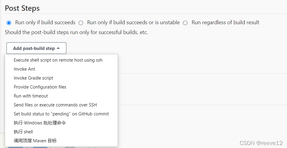 代表直接翻译成中文的前三个方框是:只有在施工成功时才运行,只有在施工成功或不稳定时才运行,无论施工结果如何运行。