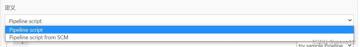 管道脚本 要么直接在页面上写入脚本命令, 要么选择以下脚本从工程中发现 Jenkins 文件, 允许脚本直接在页面或工程的 Jenkins 文件 中写入 。