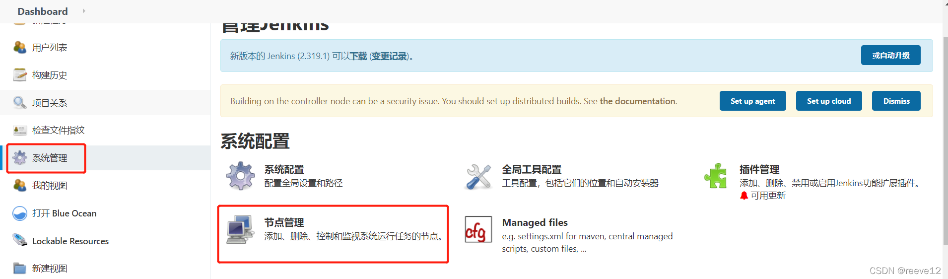 首先进入配置节点的地方,“系统管理”-->“节点管理”。