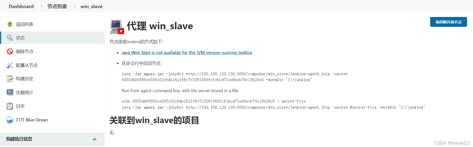 第一步:点击代理。 Jar,下载代理。 Jar, 并将罐袋放在Windows服务器D:/jenkins。