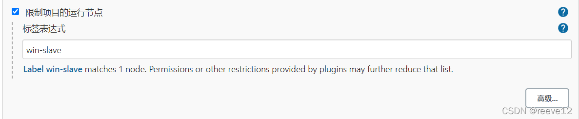 限制项目正在运行的节点: 标签表达式是您开始填写的标签, 我开始填写相同的名称, 因此连接来自节点 。