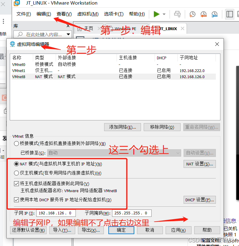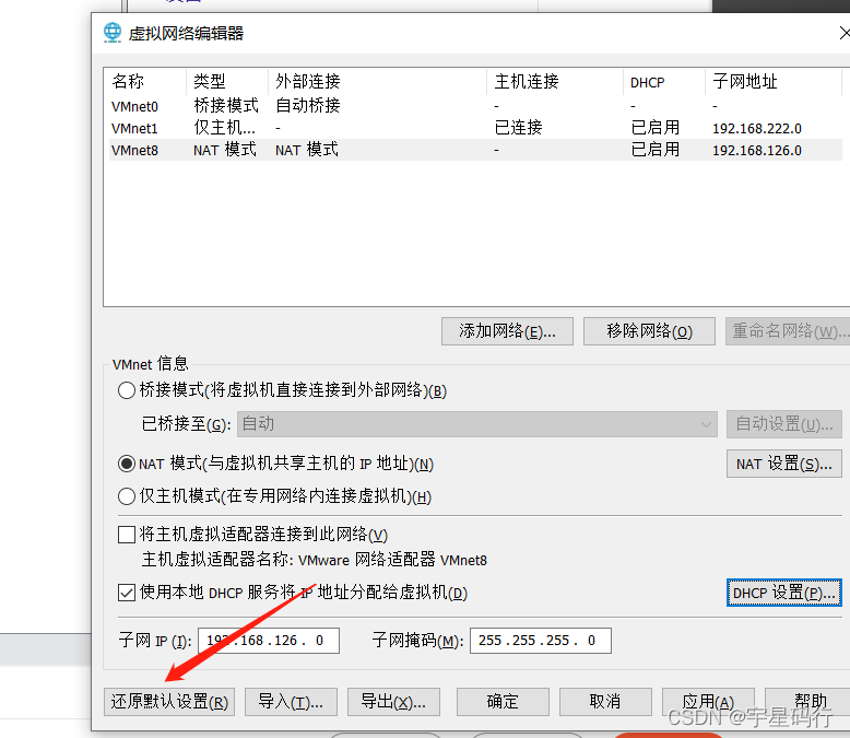 注:无论下列所有行动是否都已完成,这可能是因为丢失了网卡(偶然遭遇),如果缺少VMware网卡,就必须作为最后一个选项替换。