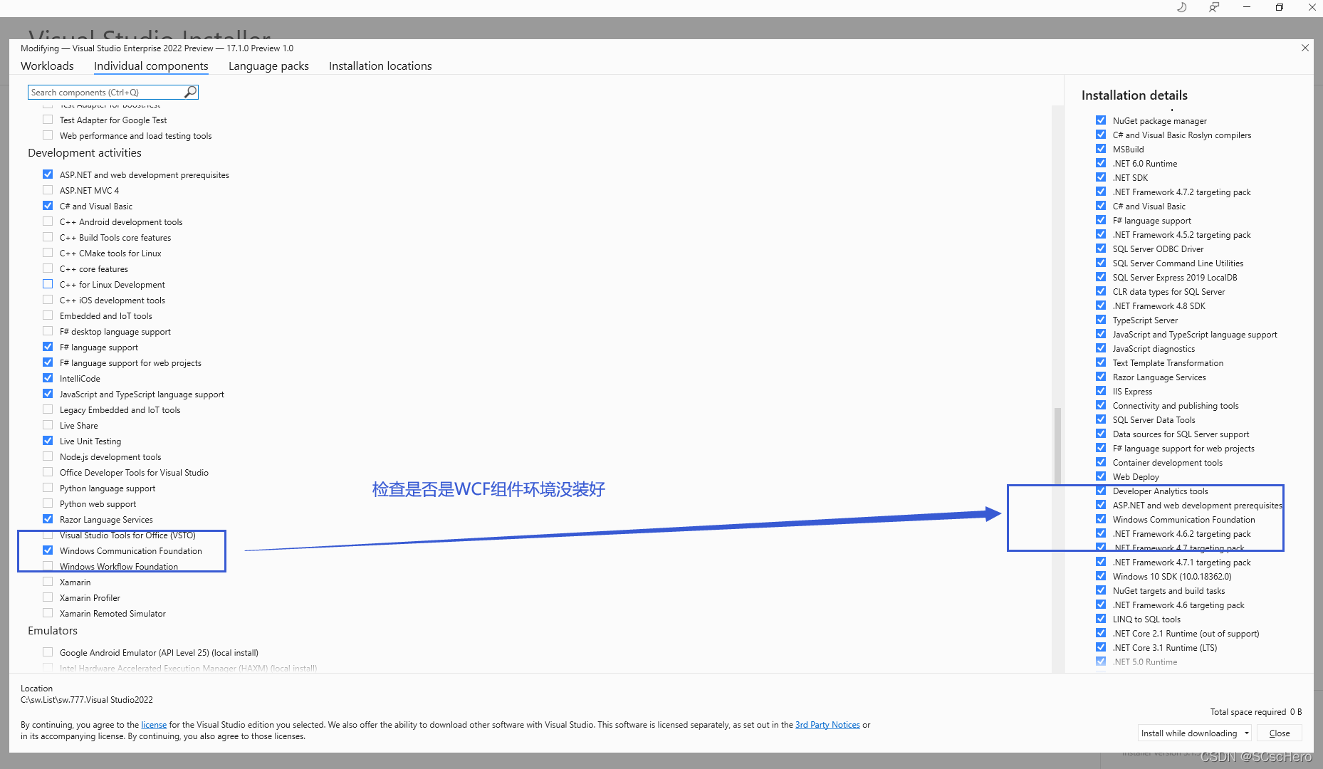 检查Tools->Get Tools and Features…下,.Net相关组件是否安装了:
