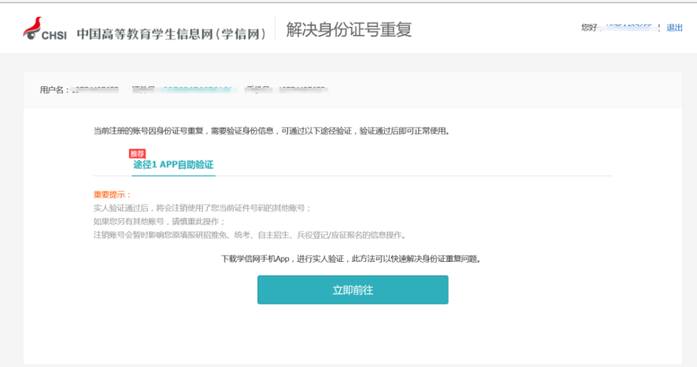 1,填写证件号码后提示证件号码已被注册,如何解决身份证号码重复问题?