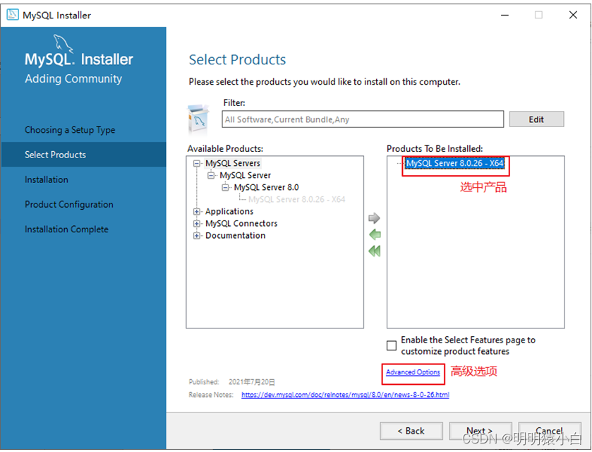 1 Mysql- 安装器- community -- 双击下载. msi 文件, 然后启动安装向导。 向导安装自动识别已安装的 MySQL 服务器 。