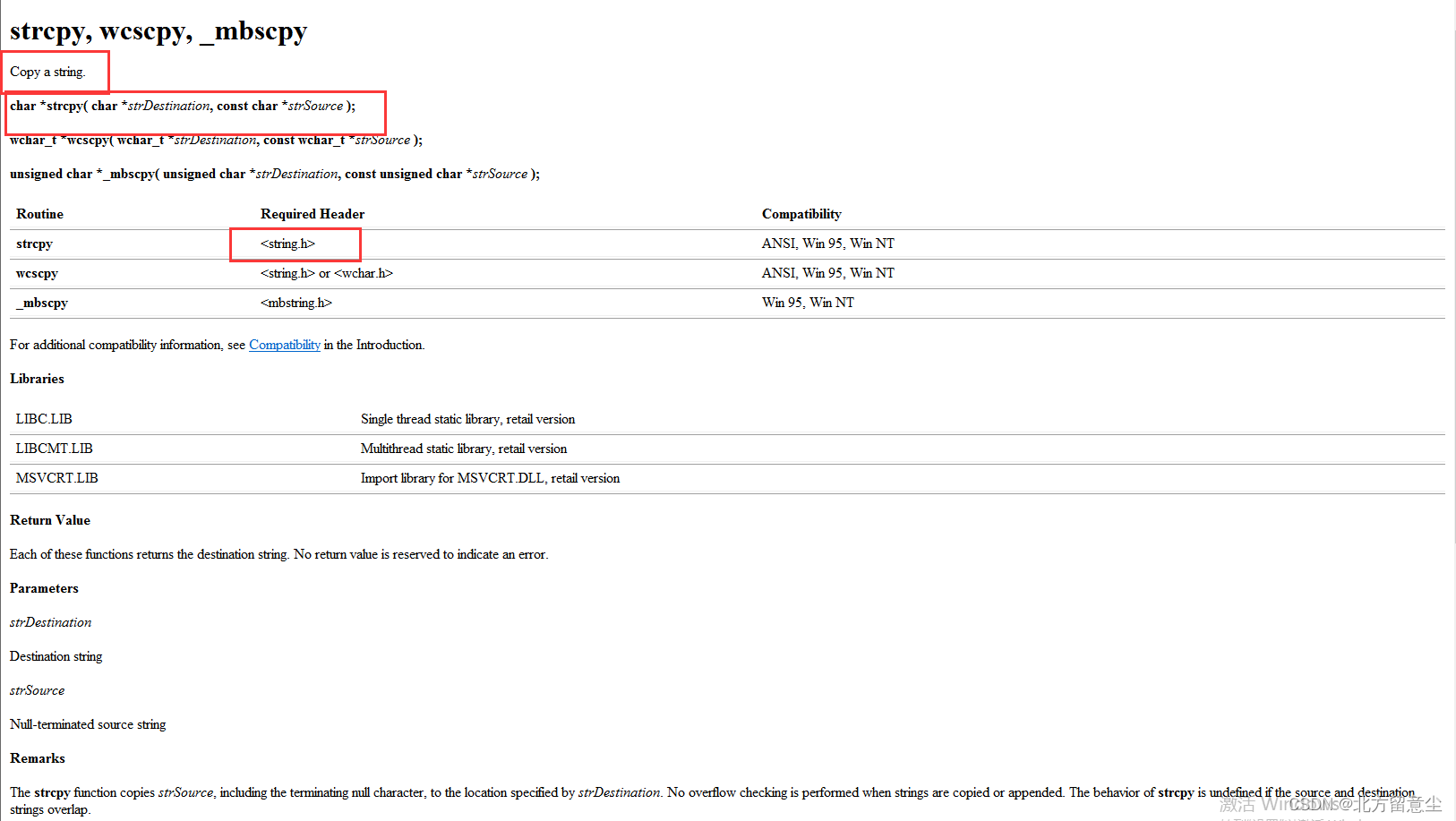 char*strcpy(char*strDestination,constchar*strSource);