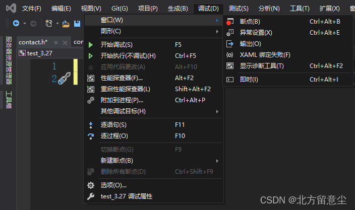 有同学发现,我打开调试->窗口,并没有发现监视是为什么?