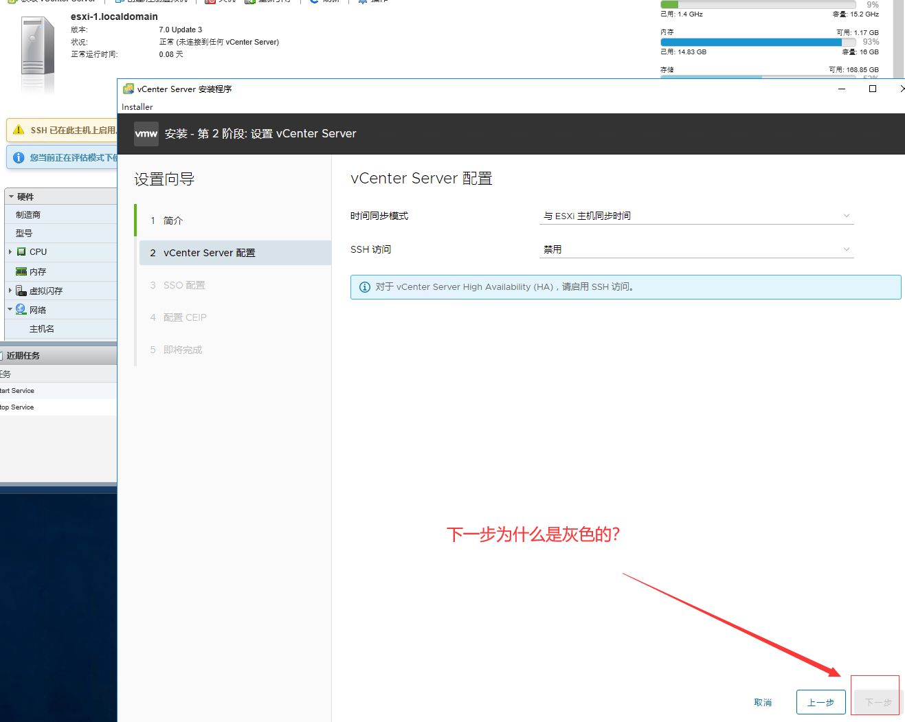 第六.vSphere安装阶段2:在配置 vCenter 服务器时,下一步是灰色且不可单击。