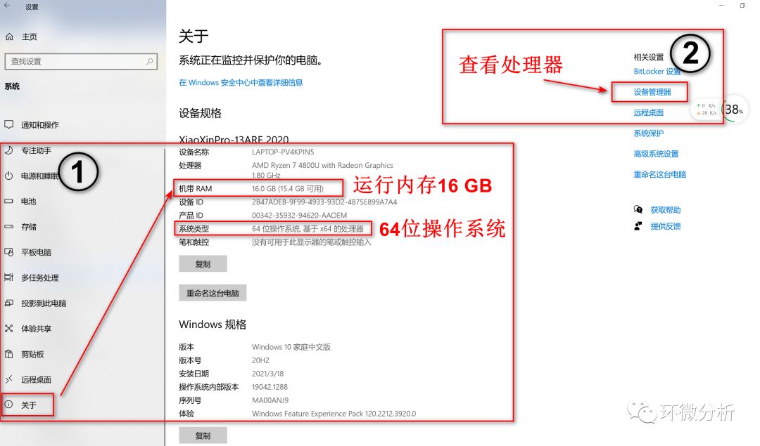 查看电脑的运行内存 (Windows10系统) —— 开始(Win)>设置>系统>关于。