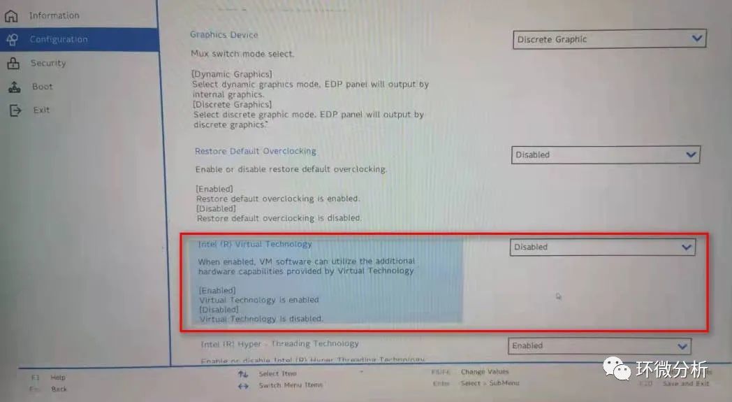 您可以尝试这个解决方案: 在计算机上输入 BIOS, 导航到配置, 并选择 Intel( R) 数字技术( 从禁用到启用) 。