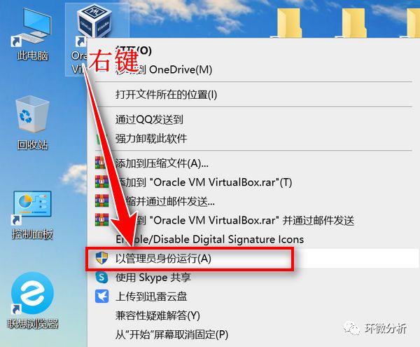 小编建议大家以管理员的身份运行(A)虚拟机Oracle VM VirtualBox,对虚拟机执行文件点击右键>以管理员身份运行(A)。