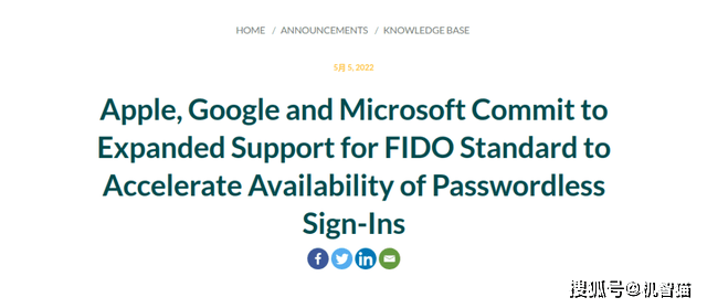 5月5日, Apple、Google和微软宣布打算增加对FIDO联盟和万维网联盟普遍无密码访问标准的支持。