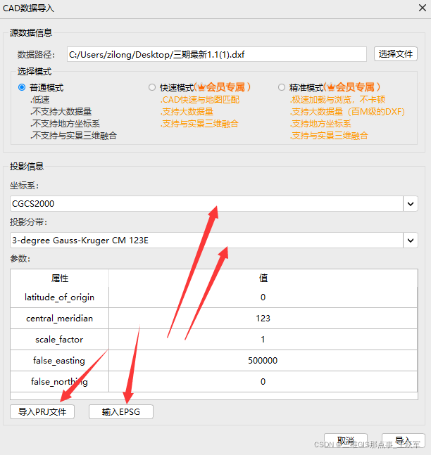 例如,以下的cad文件承认他是该国的2003度带,中心延绳为123度,并选择相应的预测。