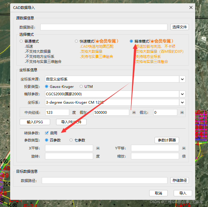 准确模式主要涉及工程协调系统或地方协调系统等非标准协调系统的准确进口匹配。