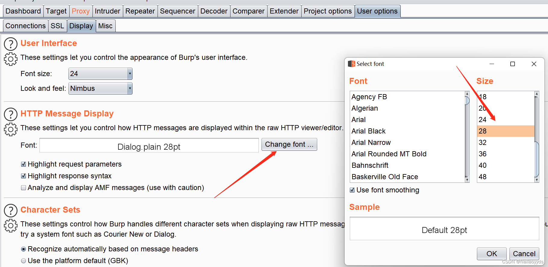HTTP消息显示可以调整被捕获的HTTP请求的字体大小,