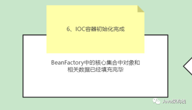 在Bean初始化完成后,整个BeanFactory被初始化,IOC容器被完成,并填充相应的数据集,等待后续的操作执行。
