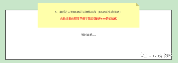 接下来我们将着重讨论如何启动豆子.实际执行是前节的第五步。当然,这个过程主要是初始化这些样品和非懒惰的豆类,懒惰负荷的豆子和原始豆子在随后需要被使用到那个豆子(例如手动呼叫 getBean等)后被初始化。直到这时才完成完全的初始化,暂且不讨论。