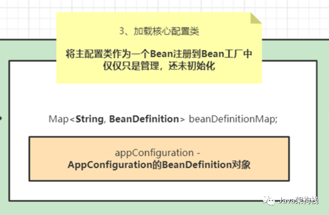 加载的代码更复杂,它没有在这里给出,朋友理解主配置为一个普通的豆类对象,放在刚创建的豆工厂,此时刚注册的豆类信息,没有作为对象初始化。
