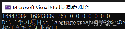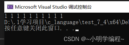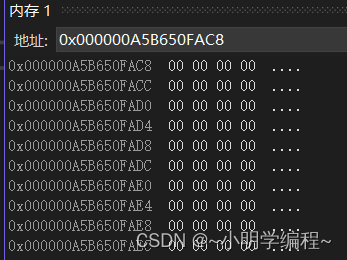 我们可以通过调试发现该组中存储的10个元素的初始值为0,然后我们可以通过指针来分配它们。