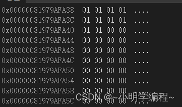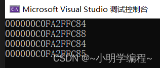 我们可以看到,内式指针+1向前移动四个字符,而字符类型指针只能向前移动一个