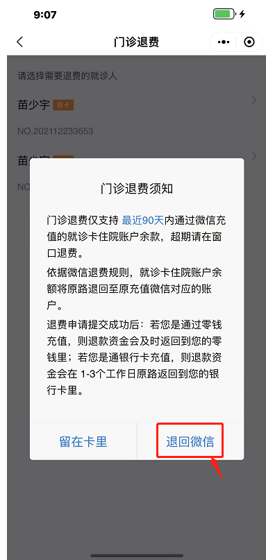 你可以到诊所收费窗口办理退款。