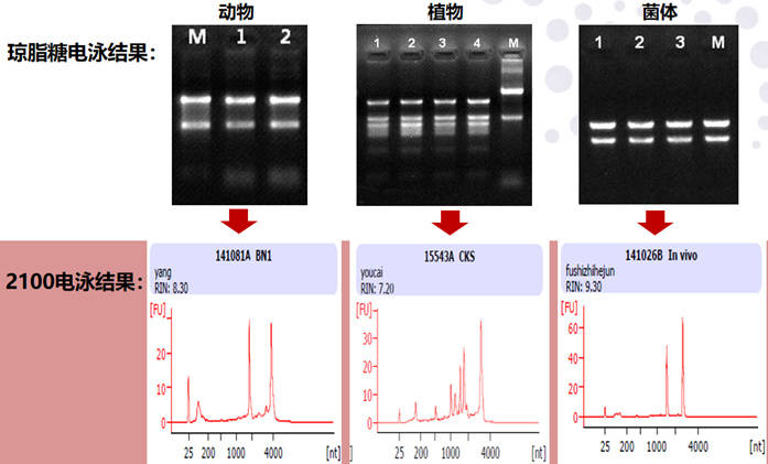 我们通常使用电泳法、Agilant 2100和其他仪器来测定RNA的完整性