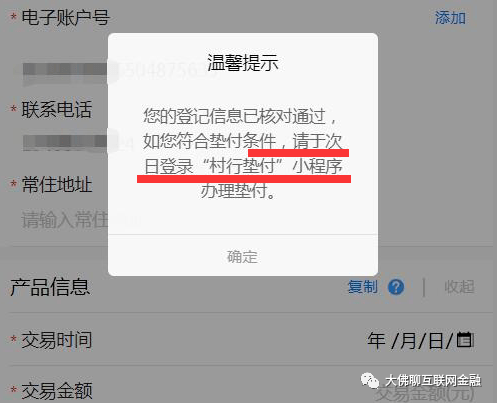 如果显示已核对通过,就可以根据提示,次日到“村行垫付”小程序办理;