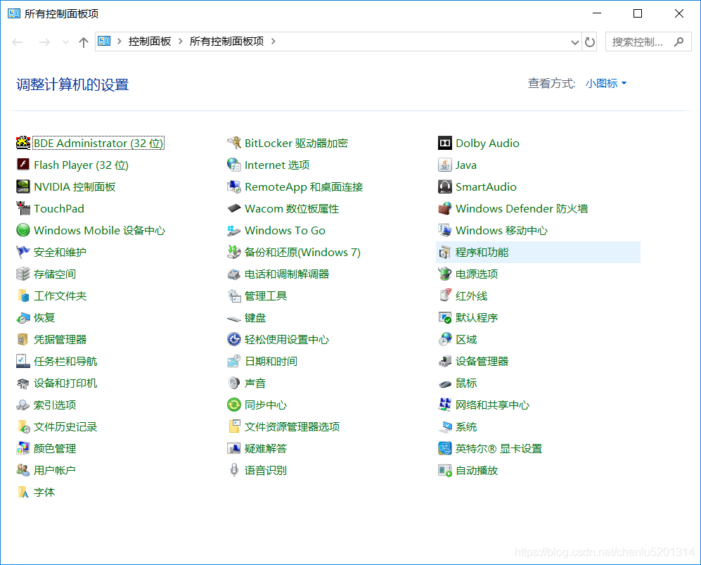 - [所有控件] 接口单击“程序和功能;