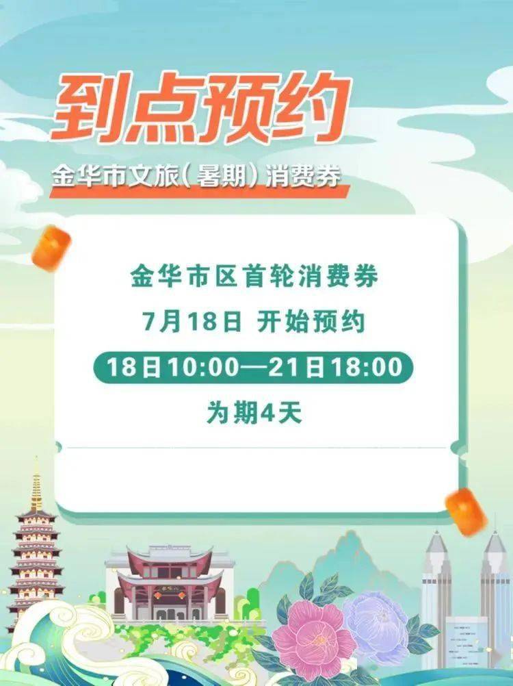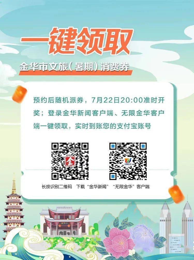 不要着急,先把金华市区文旅消费券预约上,后续其他县(市、区)的文旅消费券,正在赶来的路上。具体时间、玩法规则,金华新闻客户端、无限金华客户端会第一时间推送消息,及时关注哦!