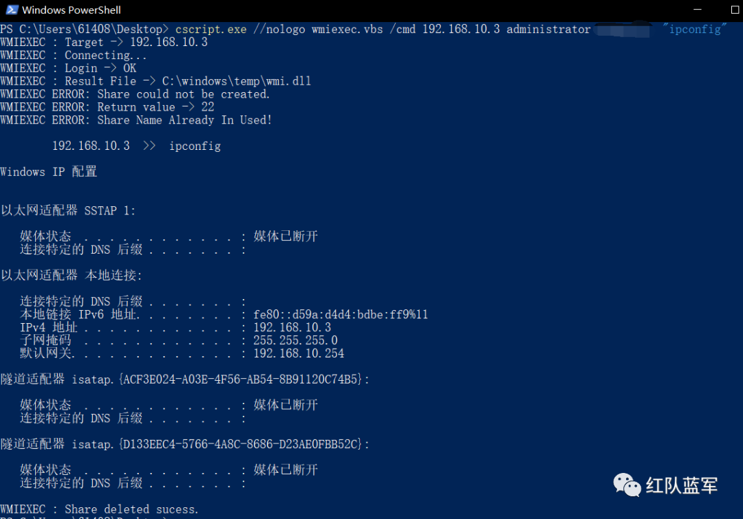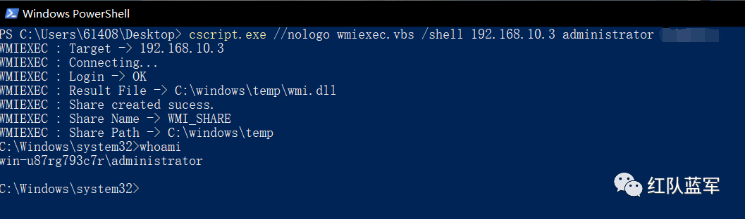 wmiexec.vbs可以执行命令并在远程系统中显示它们的远程主机半交互式壳