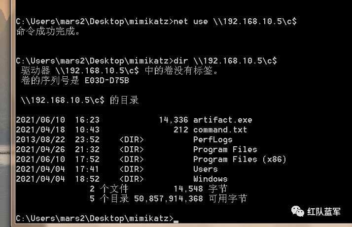 ipc$连接admin$,释放二进制文件psexecsvc.exe到目标