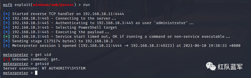 -s:以system权限运行运程进程,获得一个system权限的交互式shell。如果不使用该参数,会获得一个连接所用用户权限的shell