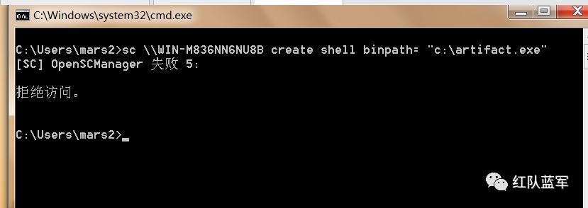 使用窗口服务进行横向渗透主要是通过sc命令,但是注意这里跟之前windows远程命令相比多了一个条件,即当前主机需要为administrator权限。