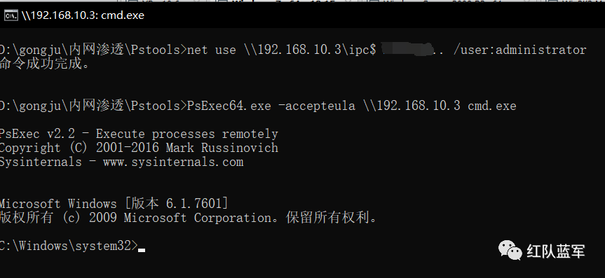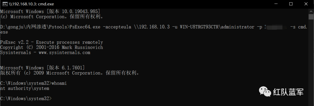 您也可以创建一个ipc连接并直接在这里呼叫它PsExec64.exe调用cmd