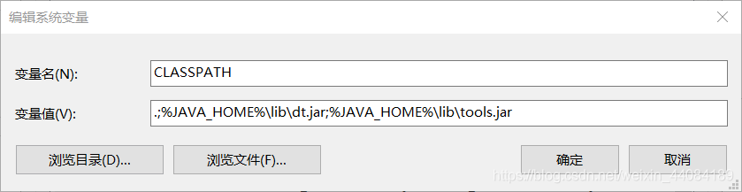 5.新的变量名称:CLASSPATH,变量值:.;%JAVA_HOME%libdt.jar;%JAVA_HOME%libtools.jar
