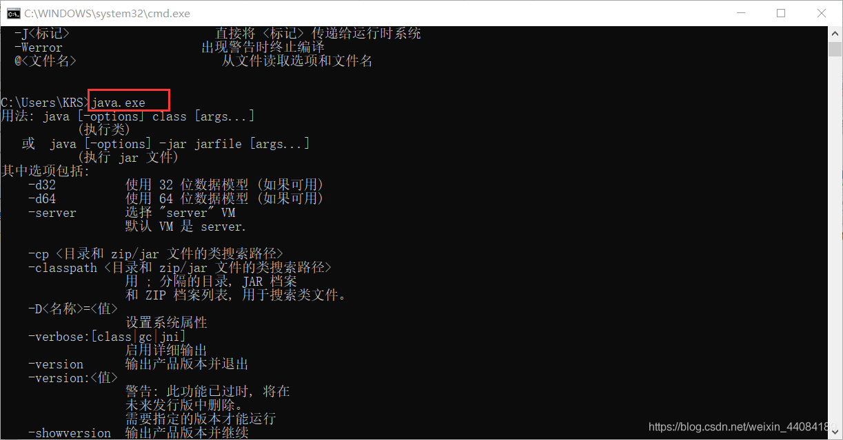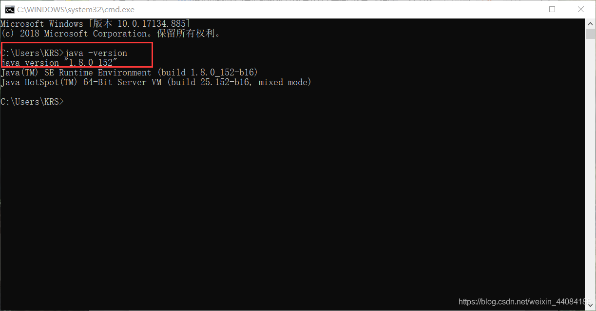 2.Enterjava-version获取当前安装的jdk版本信息(注意Java后面有一个空空间)