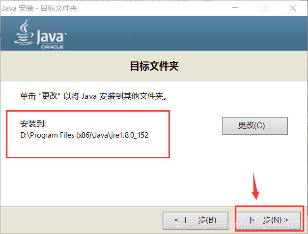 7.安装 jre,可以更改 jre 安装路径(过程同上述安装目录的选择)。(注意:如果提示需要将 jre 安装在一个空目录下,那自己创建一个目录即可)