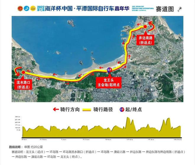 路线说明:龙王台广场(起点)-北路道-北港村-昆明村-长江青景区-北环道道-苏平路-和平大道-平潭资讯科技学院-南路-唐南湾-海塘老城-东路-龙王台广场(终点),全程约77公里,有关骑车及相关预防措施的详细资料将另行公布.