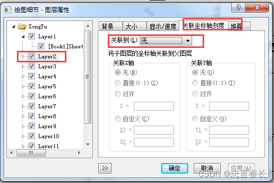 (如图所示,默认的2层与1层关联,所以取消关联)