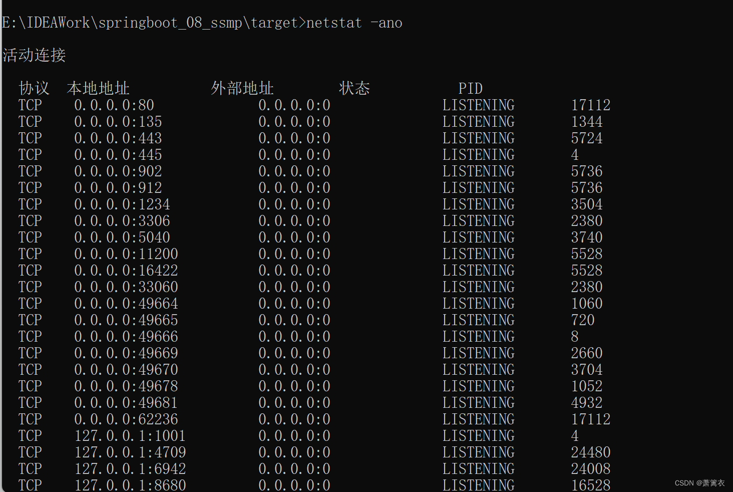 netstat -ano | findstr"港口号码"